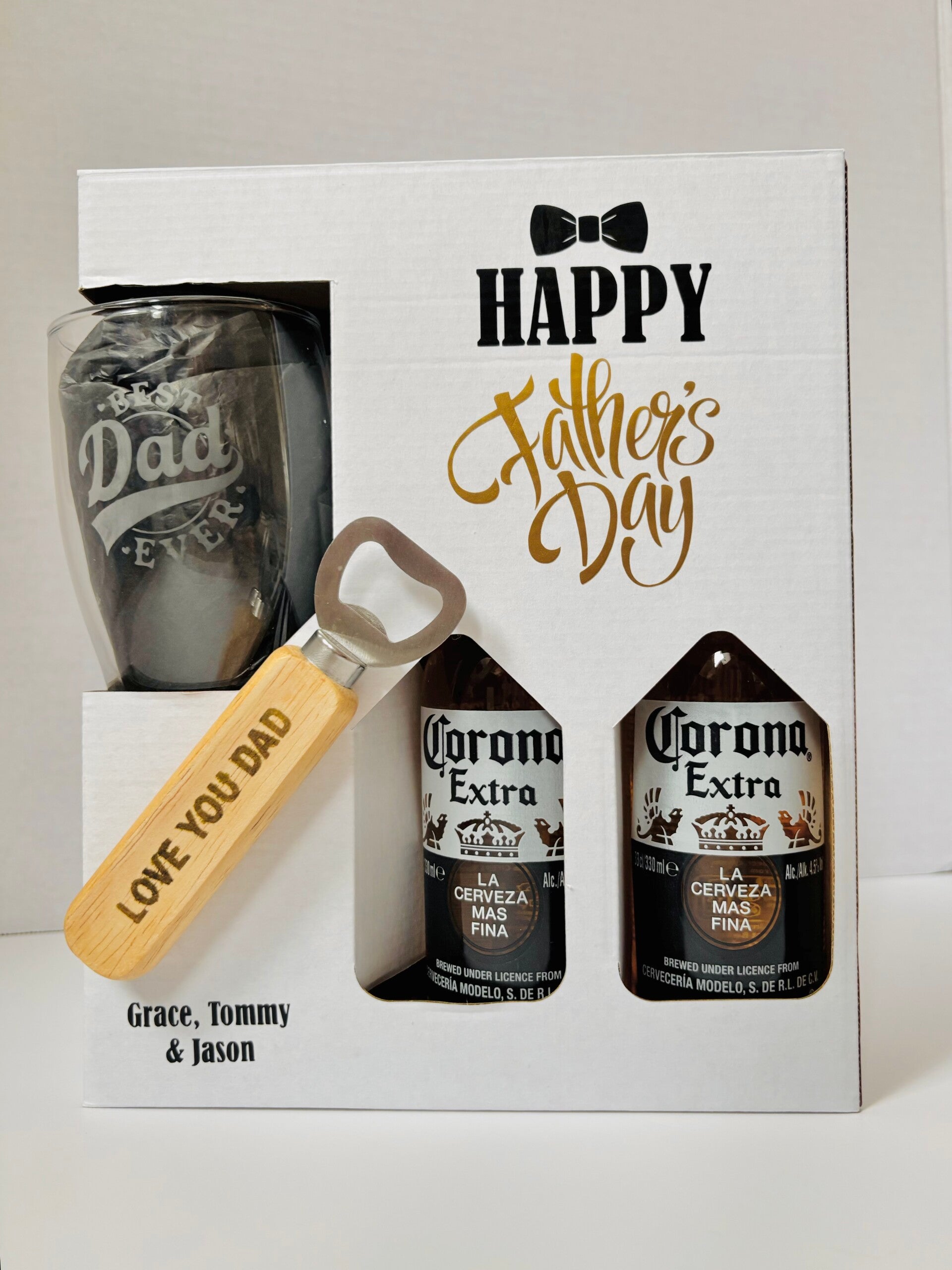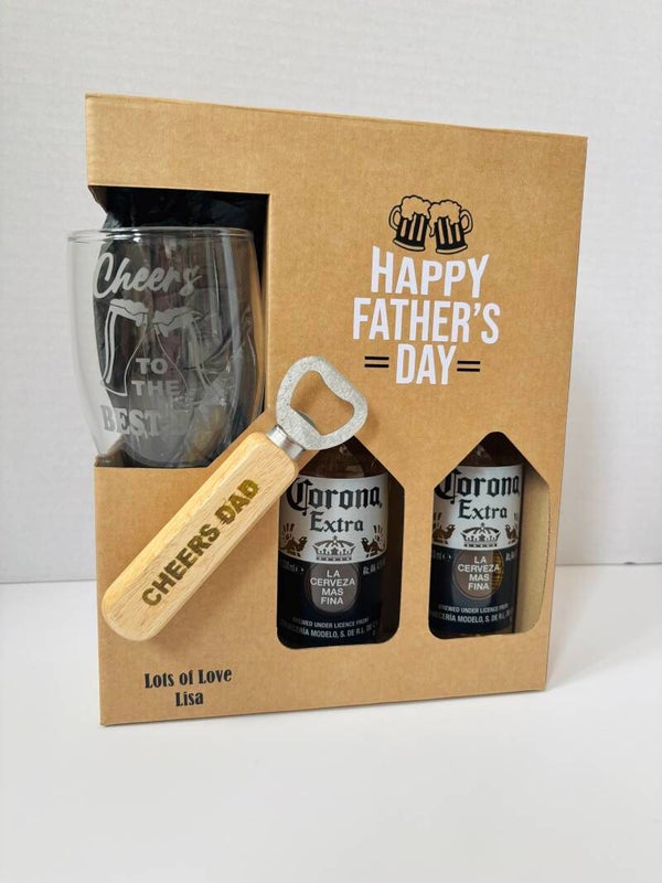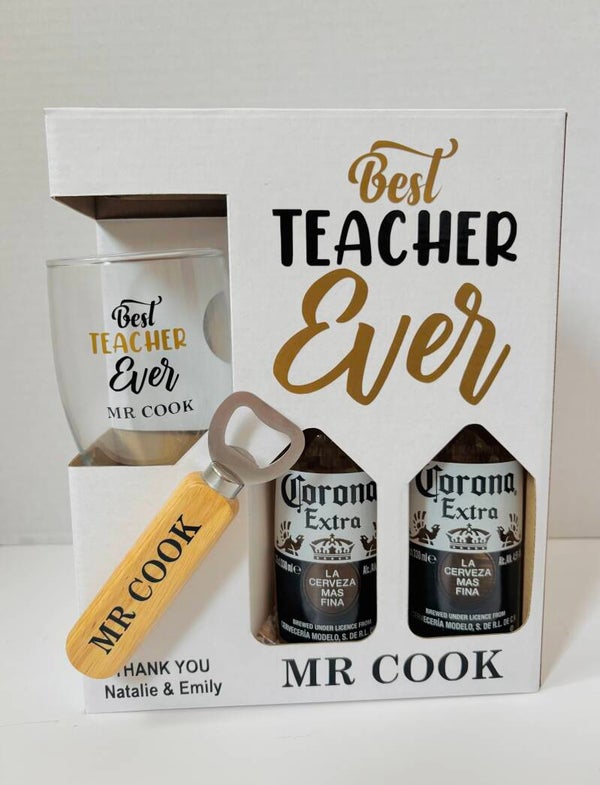 Personalised Box - Beer Glass - Personalised Bottle Opener - Space to add Two bottle of Beer (Please Notice Beers are not included, just for photos purpose only) Can be Personalised with any Message for all special occasions, Father's Day - Best Teacher - Happy Birthday or Just Because.